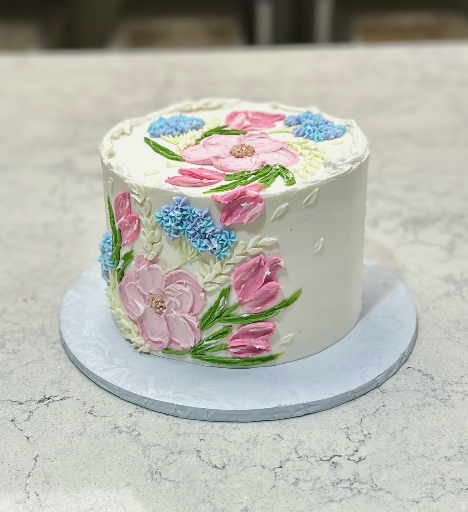 Grab and Go 6 “ cakes are available daily but most custom cakes (single tier) require a minimum 1 week lead time, depending on design level and availability. For two tier buttercream style cakes we require a minimum 2 week lead time depending on design level and availability. Please allow extra lead time during peak seasons.