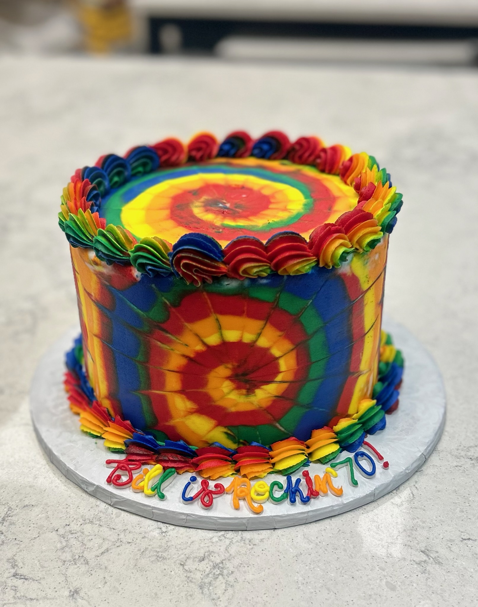 Standard cakes come with combed sides and cannot be smooth iced. The cake will consist of 2 layers of cake forming 1 tier. Standard cakes come with sprinkles and a custom birthday message.