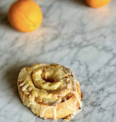 Keep in your freezer and serve at your next breakfast holiday! Slice and bake up to 10-12 slices of our house made biscuit smothered in cream cheese and orange marmalade. Top off with a drizzle of sugar glaze. Must be kept frozen and local pick up in store only. Perfect for neighbors and big family gatherings!
